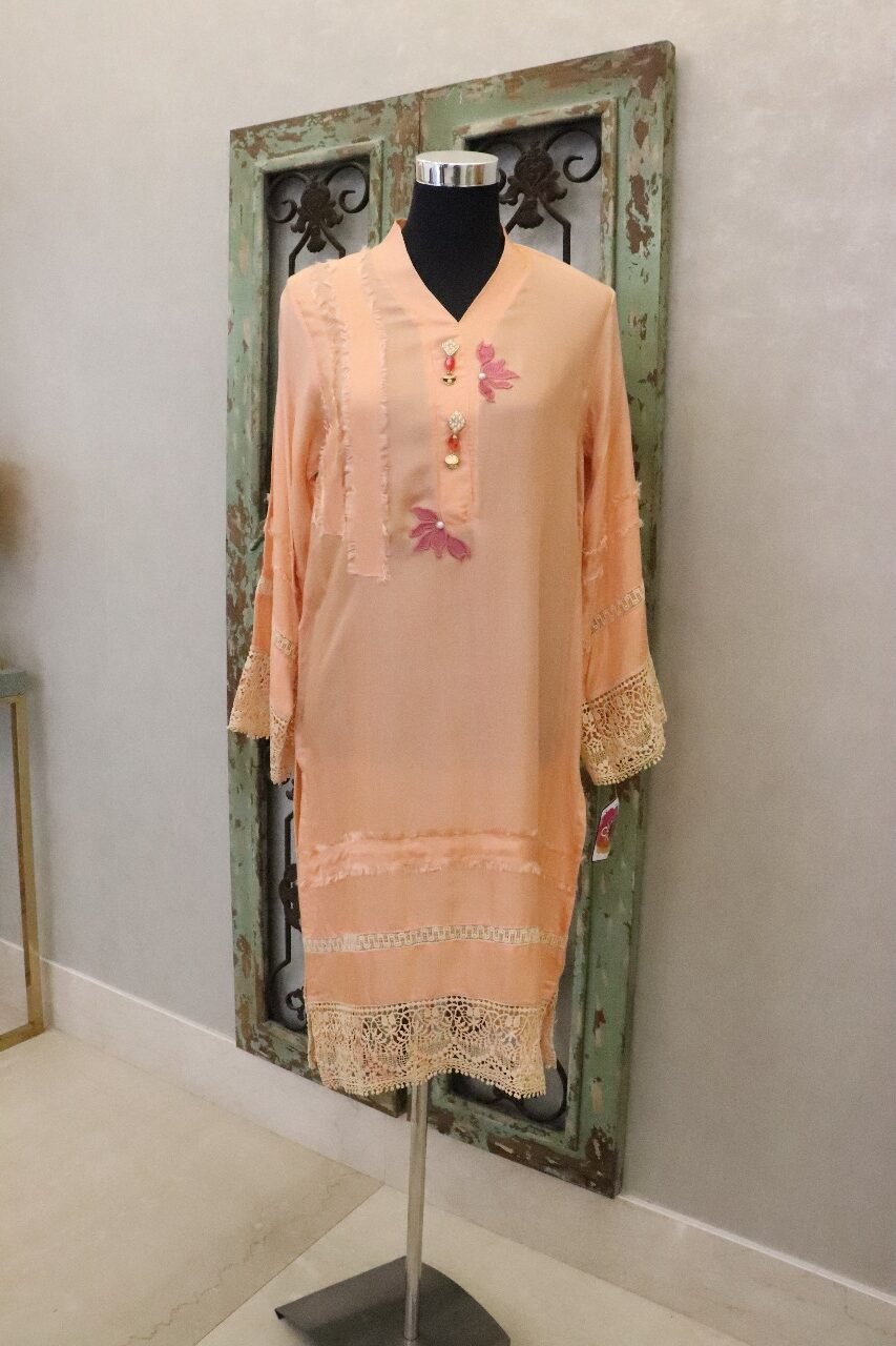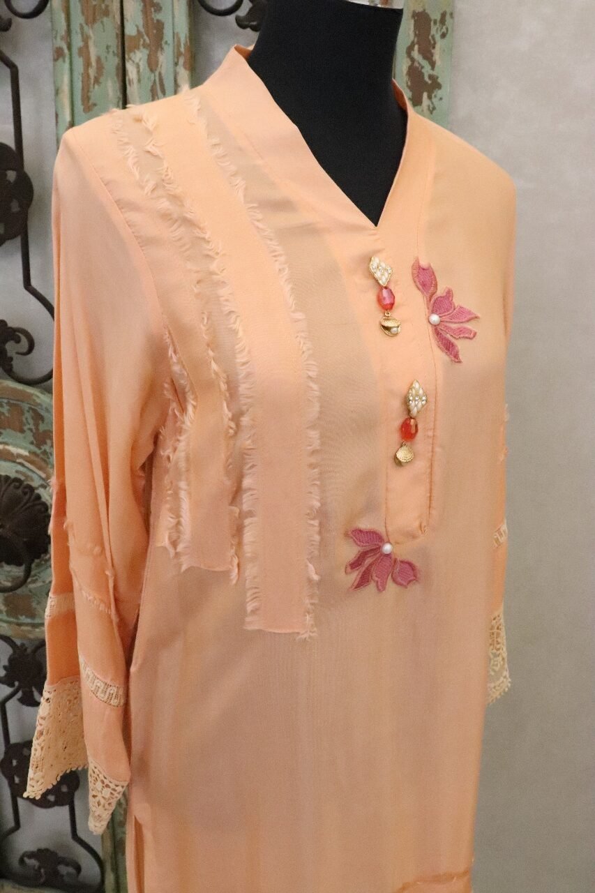 • Adorned with floral embellishments, eye catching self colored laces and beautiful buttons
